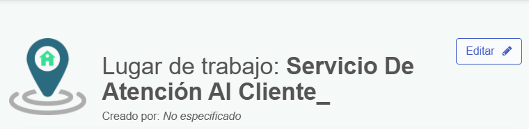 Para activar esta función, desde el módulo de Control de Asistencia, nos ubicamos en la opción "Ficha de Lugar de Trabajo" en el menú lateral. El usuario administrador del módulo podrá ver la opción "Editar".