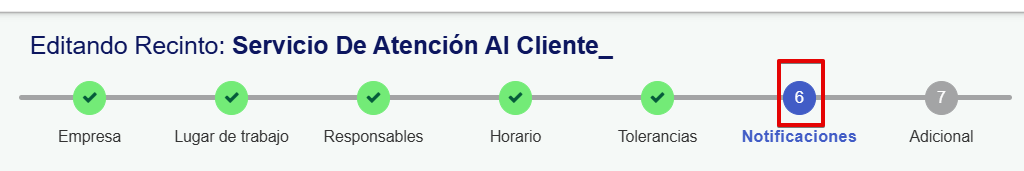 Dentro de la configuración del recinto, debemos dirigirnos a la sección "Notificaciones".