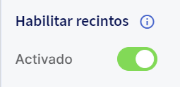 En ⚙️Parámetros generales deberás buscar la configuración general "Habilitar recintos".