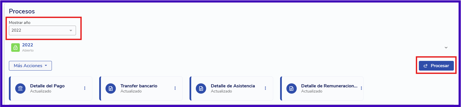 Abrir el Año de Pago: Ve a Remuneraciones > Procesos > Selecciona el año > Más Acciones > Abrir año.