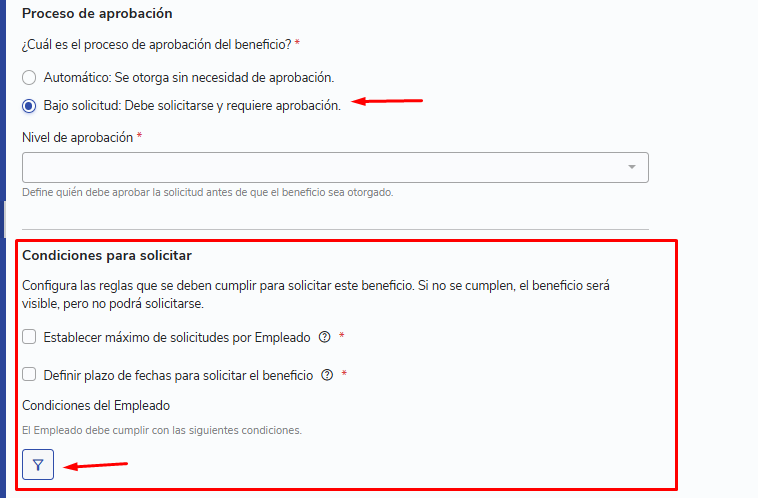 Condicionantes para solicitudes de beneficios