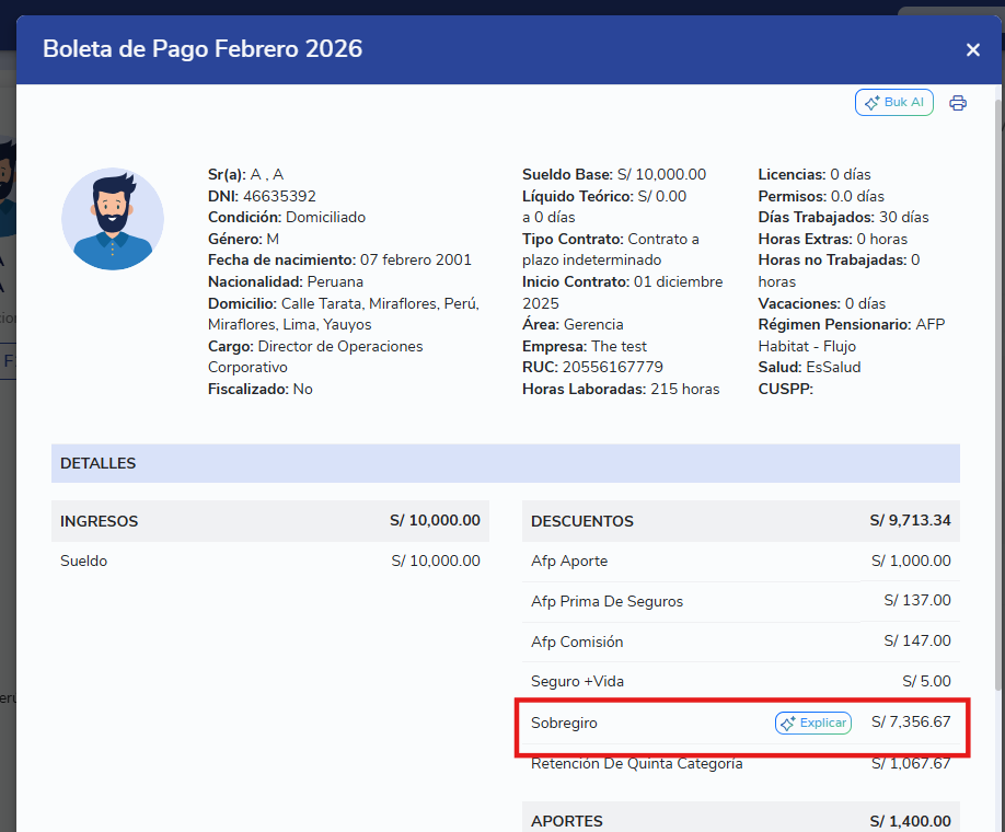 No es necesario realizar ninguna acción adicional. El sistema regulariza el saldo negativo de forma automática en el período siguiente, identificandolo como un concepto de sobregiro en la sección de descuentos.