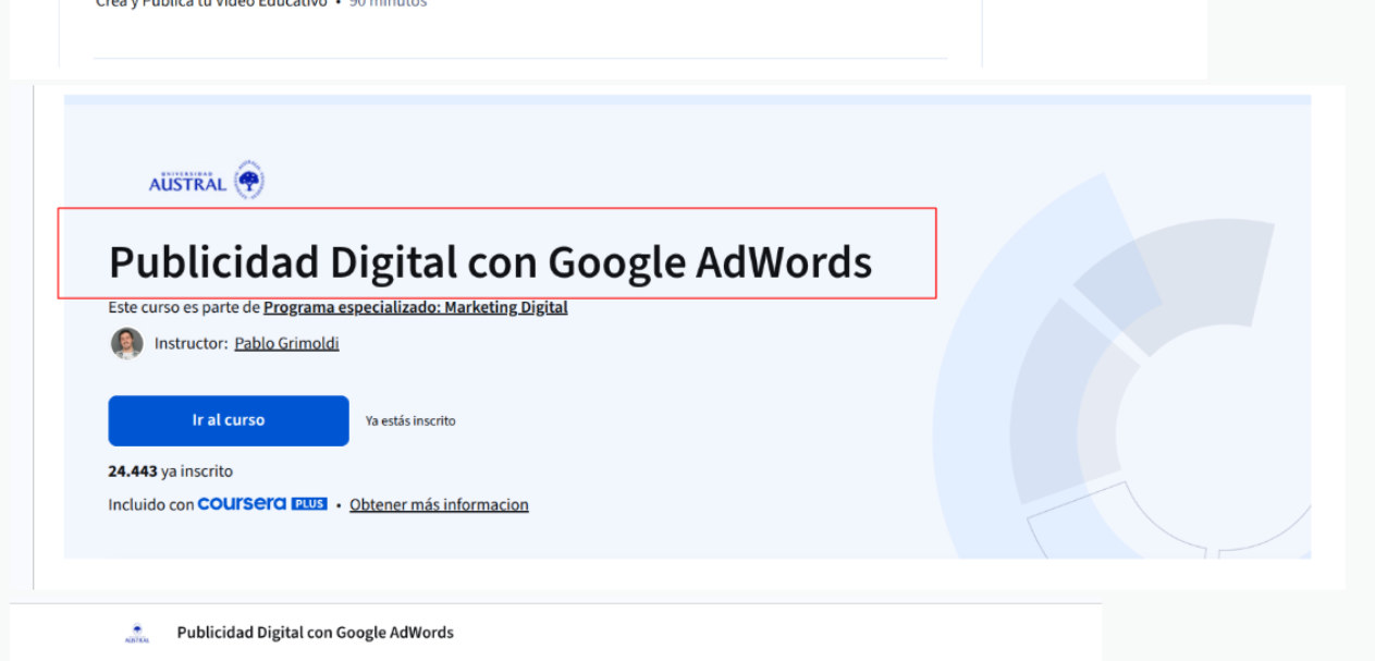 Si se trata de un módulo, busca el nombre del curso principal (curso "padre") para visualizar todo el contenido relacionado.