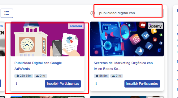 En el buscador del catálogo, ingresa el nombre del curso completo.