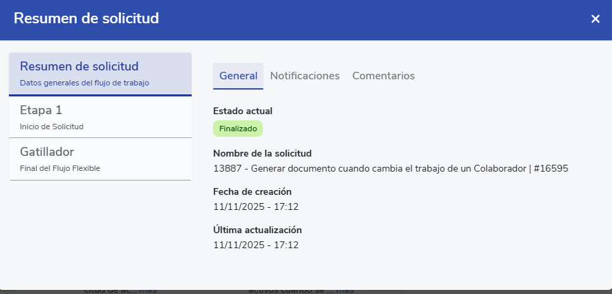 Nota*: El evento "Cuando se modifica el trabajo de un Colaborador" aun no detecta si cambió un atributo en específico, solo identifica que hubo algún cambio en el trabajo del colaborador y, si además se cumple una condición adicional