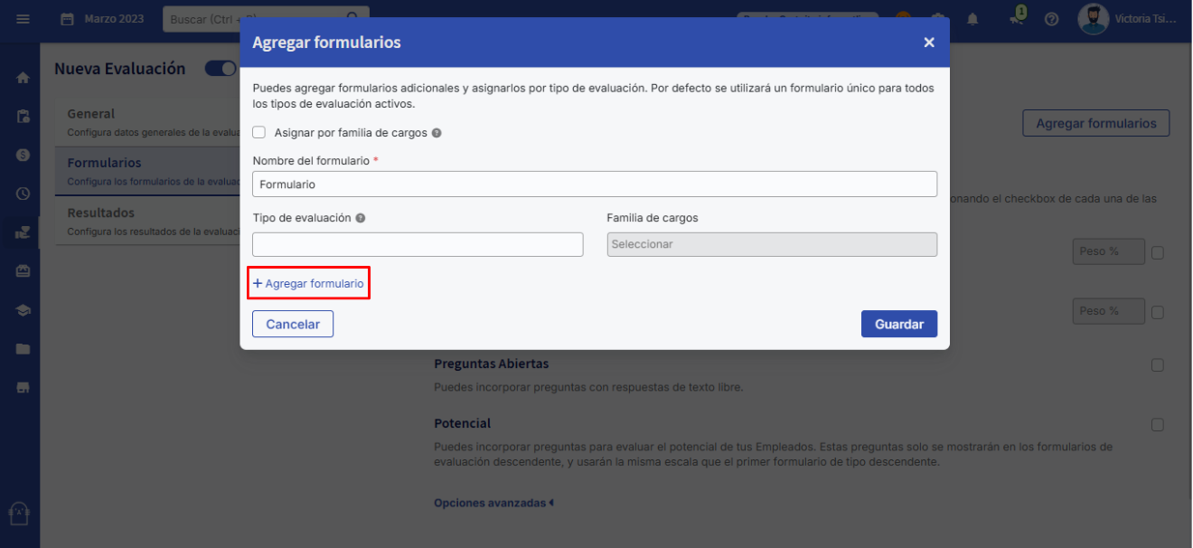 Além disso, você pode atribuir/alterar um “Nome do formulário” e selecionar o “Tipo de avaliação”.