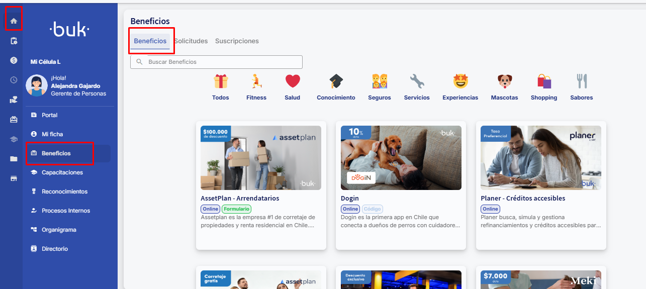 Dirija-se à opção Minha compañía >> Benefícios, onde você encontrará a lista de todos os benefícios que seu empregador tem disponível para você.