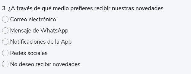 Exemplo de visualização do respondente Seleção única