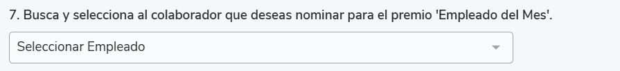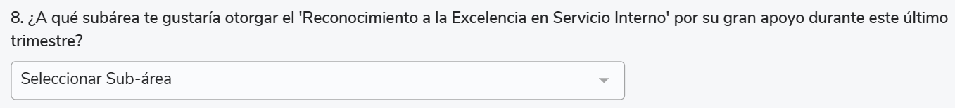 Os tipos de perguntas Seleção de colaboradores (7) e subáreas (8) permitem criar pesquisas onde o respondente possa responder diretamente uma área e/ou um colaborador.