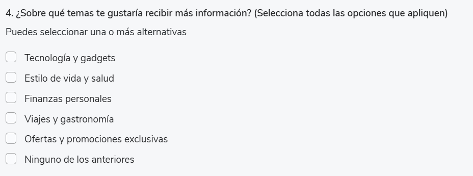 Configuram-se da mesma forma que em “Seleção única”, adicionando ou removendo opções conforme necessário.