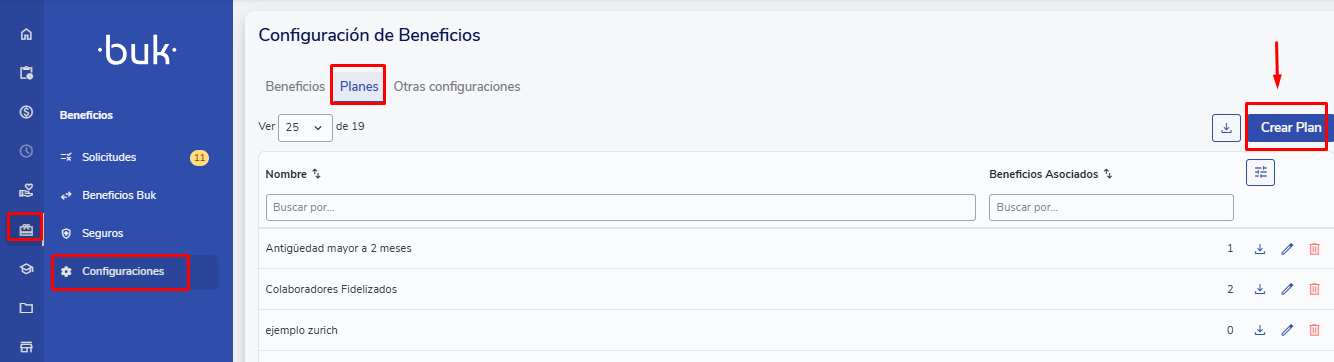 Acesse Beneficios>>Configuraciones>>Planes>>Crear Plan