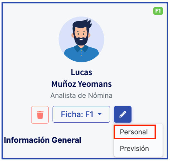 Quando já tiver seu plano de benefícios criado, você pode atribuí-lo aos seus colaboradores de forma individual a partir da ficha do colaborador clicando no ícone do lápis e pressionando a opção "Personal".