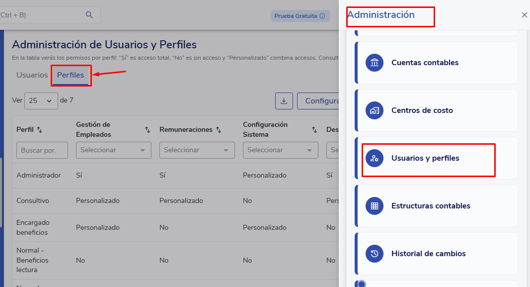 - Benefícios:Você poderá criar, modificar e gerenciar os benefícios a partir do seu módulo, lembre-se de que é muito importante não estar limitado por área, caso contrário não poderá acessar esta opção. Além disso, você poderá realizar as configurações gerais e criar planos de benefícios.